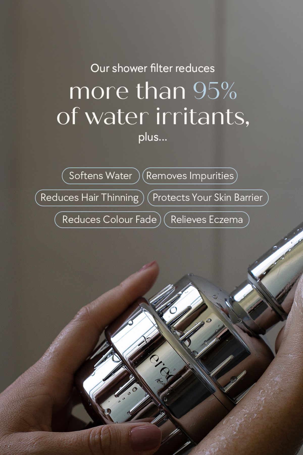 Filters calcium, magnesium, and chlorine before they reach your curls.